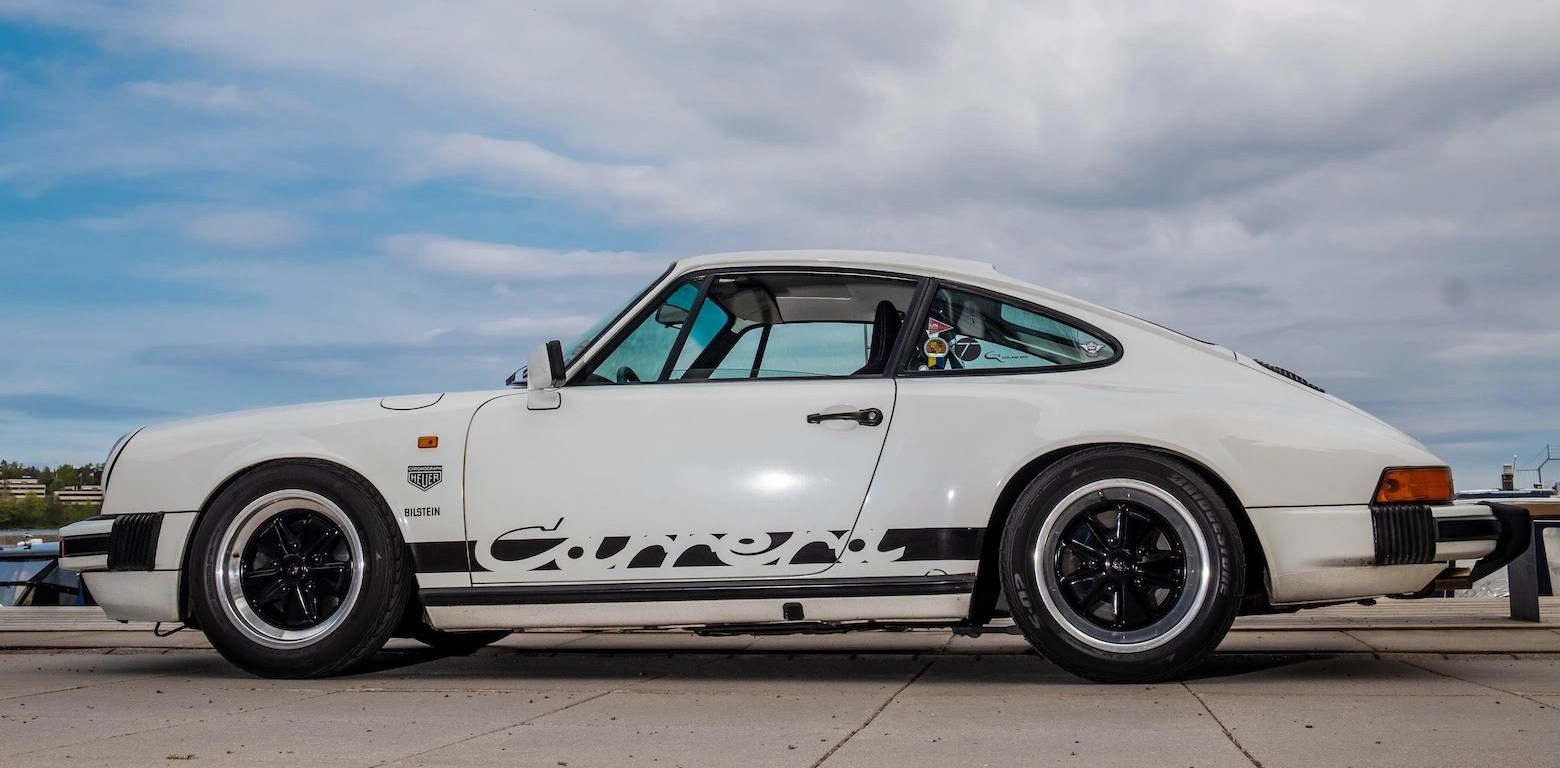 – Den jag kör nu är en 1984-årsmodell, en Porsche 911, modellen som kallas för G, den klassiska 911:an. Det är både en 1960-talsmodell, när den hette F, och från 1974 blev det den här formen som min bil har nu. Den ser i princip likadan ut, och man kan både fram- och bakdatera bilarna. Innan dess körde jag en 356:a, som jag hade nästan i 20 år.