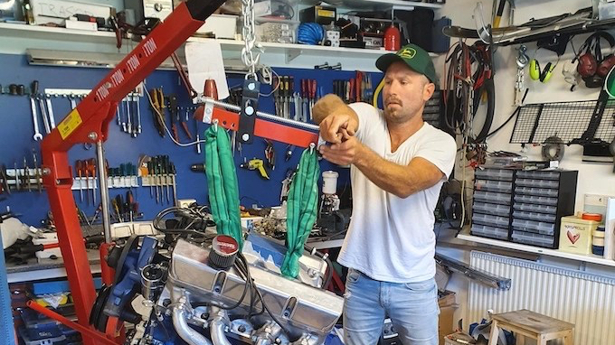 – Den motor som ska sitta i är en vanliga 390 big block-motor, som alla amerikanska Fordar på den tiden. Däremot är det lite annorlunda grenrör och toppar på den. Men överlag är motorn standard.